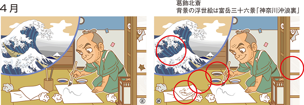 2017プレゼントカレンダー「間違いはどこだ?」4月の問題〈葛飾北斎編〉